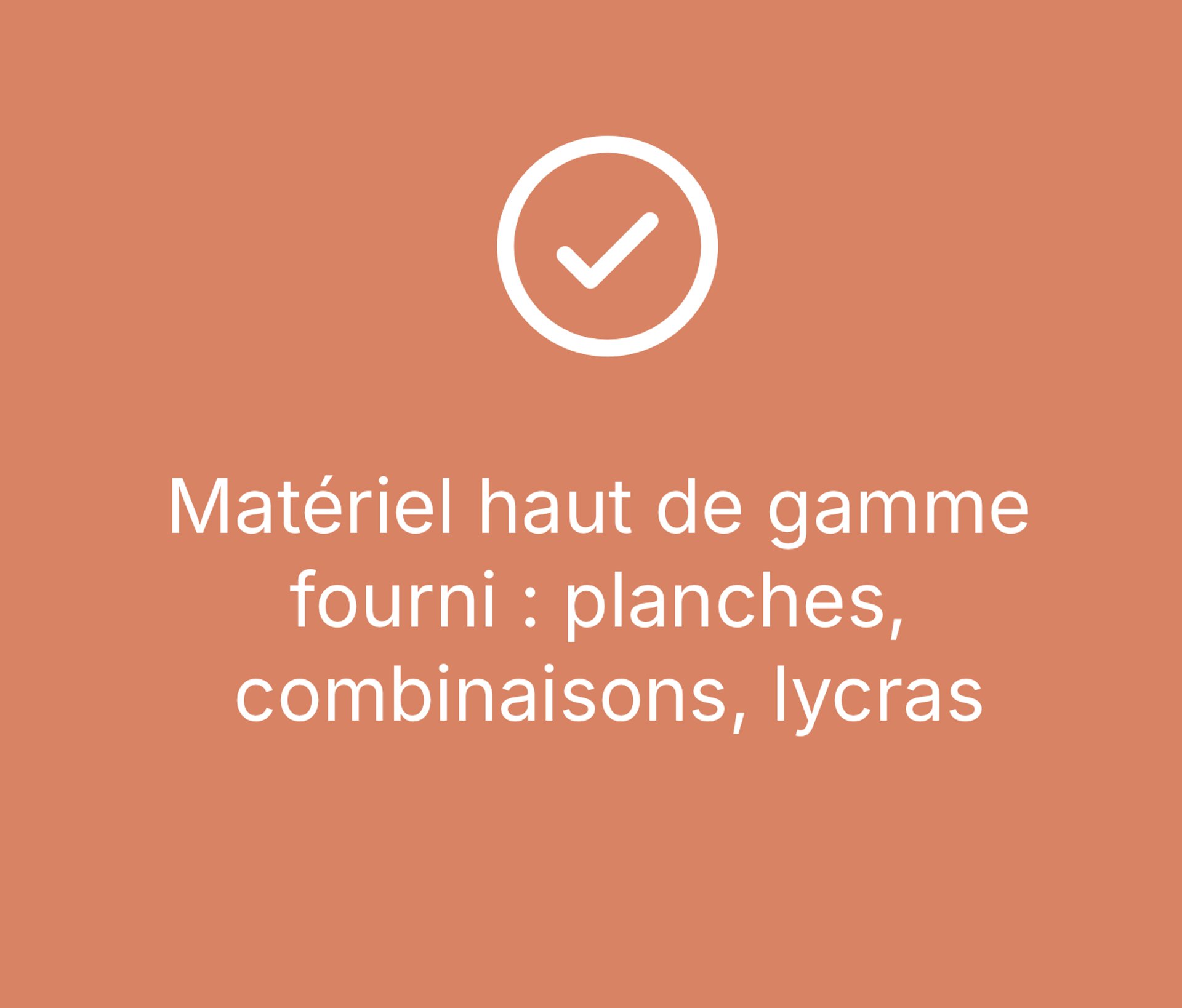 Matériel haut de gamme fourni : planches, combinaisons, lycras