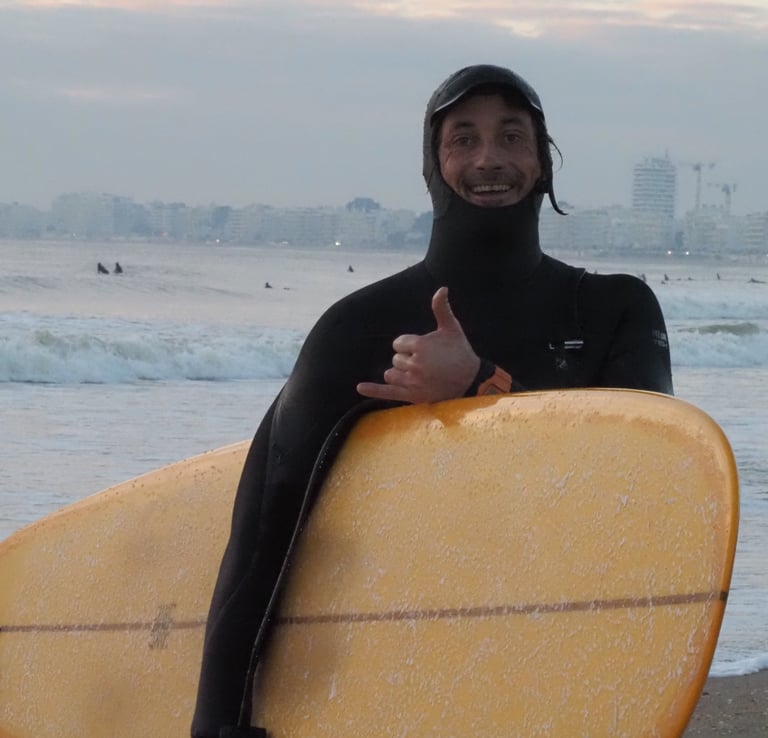 Porté par sa passion pour les sports de glisse, il s’est naturellement tourné vers le surf, qu’il pratique avec intensité depuis plus de 30 ans. Diplômé d' un BPJEPS Surf et disciplines associées, il encadre aujourd’hui ses élèves avec bienveillance, rigueur et enthousiasme, que ce soit pour une première session ou un perfectionnement.