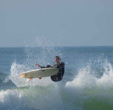 Porté par sa passion pour les sports de glisse, il s’est naturellement tourné vers le surf, qu’il pratique avec intensité depuis plus de 30 ans. Diplômé d' un BPJEPS Surf et disciplines associées, il encadre aujourd’hui ses élèves avec bienveillance, rigueur et enthousiasme, que ce soit pour une première session ou un perfectionnement.